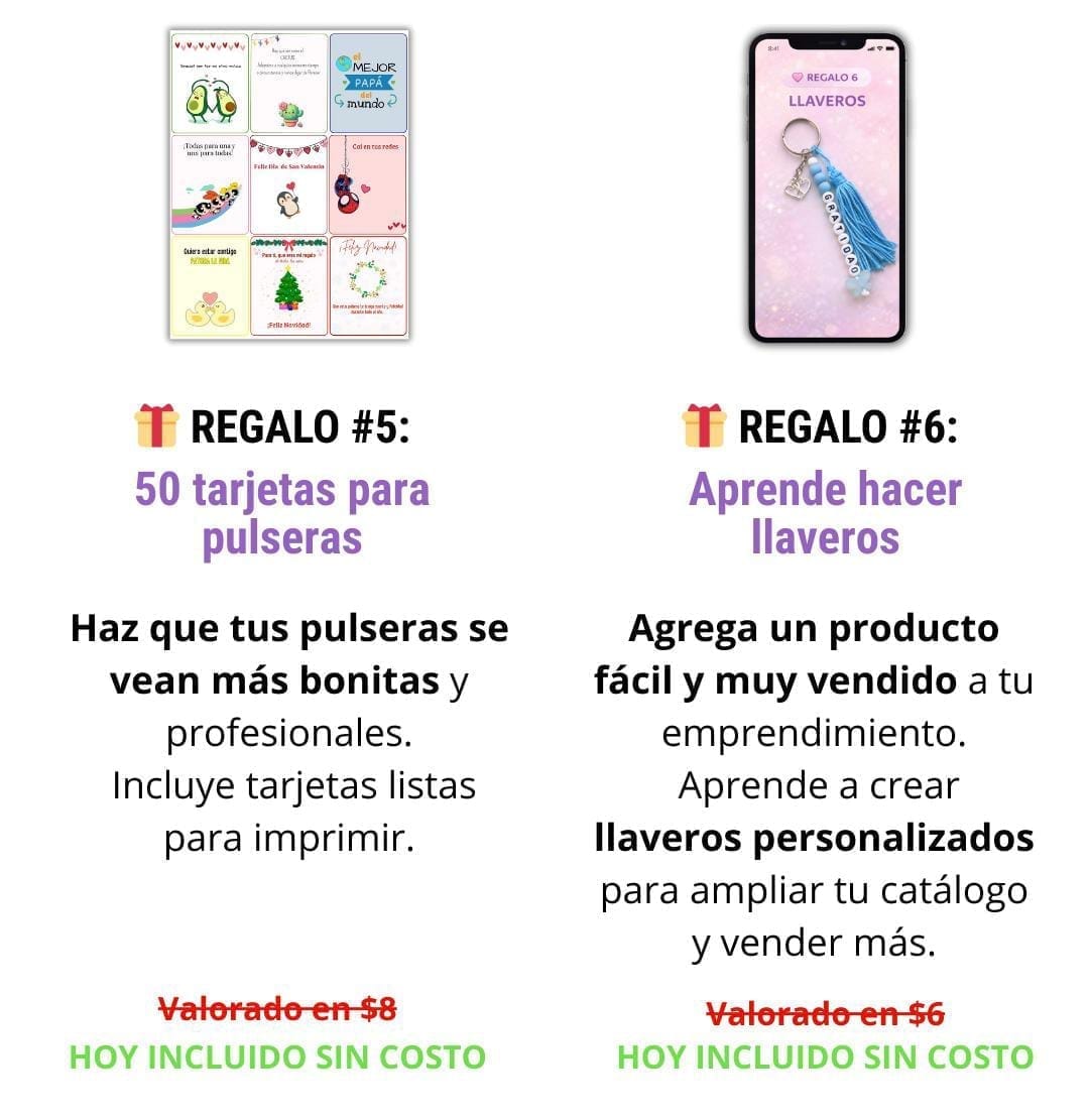 Bono #5: 50 tarjetas para pulseras $8 (HOY GRATIS)