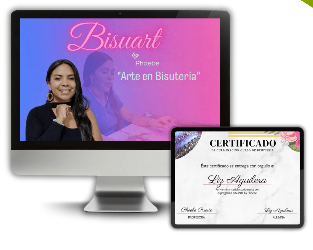 Phoebe,con más de 8 años de experiencia enseñando bisutería y acompañando a muchas mujeres a crear sus propios emprendimientos desde casa.